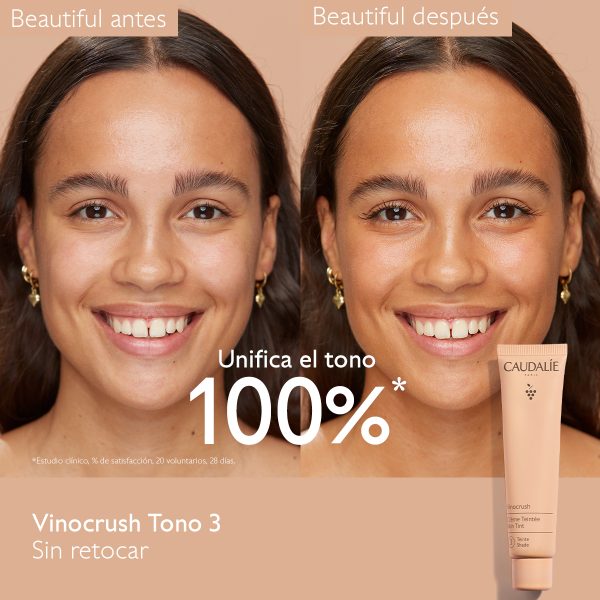 La Crema con Color Vinocrush corrige y unifica la piel y realza su belleza natural. Sus pigmentos encapsulados de origen natural se funden en la piel al aplicarla y proporcionan un tono adaptado al color de la piel que deja un cutis unificado y sin defectos y un acabado ultranatural. Tratamiento y maquillaje a la vez, su fórmula “clean” y natural con ácido hialurónico y agua de uva hidrata la piel y la ilumina durante todo el día.
