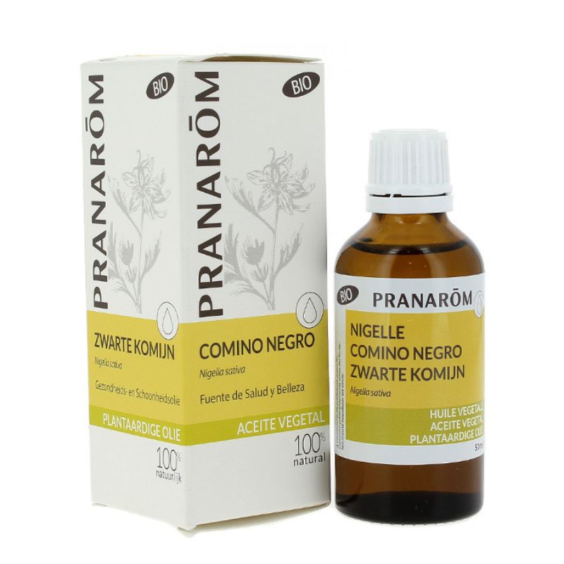 Aceite vegetal de comino negro 100% natural y bio, obtenido a través de presión en frío de la semilla del comino negro.