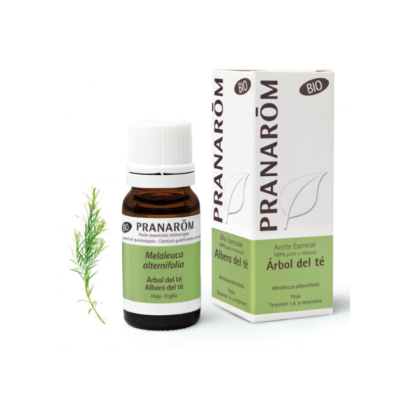 Pranarom Aceite Esencial BIO Árbol del Té contiene moléculas aromáticas extraídas de la hoja de Melaleuca alternifolia, conocido por su potente acción antibacteriana, antiviral, fungicida, parasiticida y estimulante del sistema imunitario.