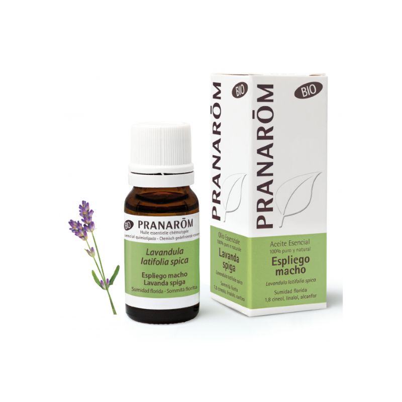 PRANAROM AE ESPLIEGO MACHO 10ML BIO, a esta planta aérea le gusta la baja montaña del sur de Europa y los suelos calcáreos, teme el frío y está dotada de flores de un color violeta pálido dispuestas en espigas laxas, en la punta de tallos largos. La floración y recolección son más tardías que las de la lavanda. El espliego proporciona un aceite esencial denominado “de urgencia”, ya que será “milagroso” para aliviar y curar de manera casi instantánea las quemaduras graves y las picaduras de avispa.