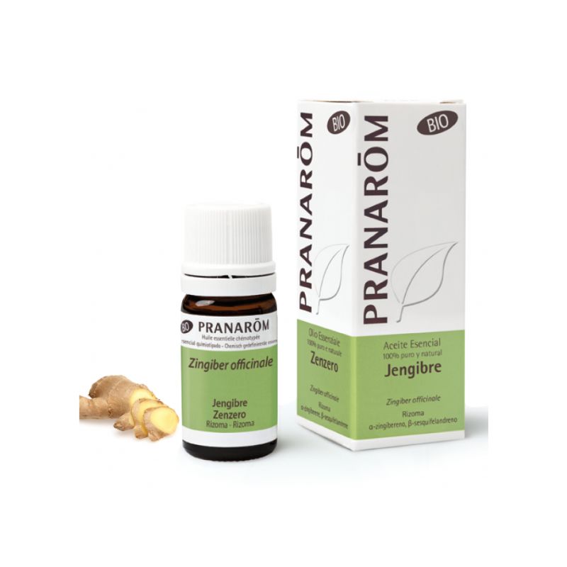 PRANAROM AE JENGIBRE 5ML, el rizoma de jengibre se utiliza desde hace más de 6000 años en la India y en China para el tratamiento de problemas estomacales, de la diarrea y de las náuseas. Es también muy conocido por su uso culinario.