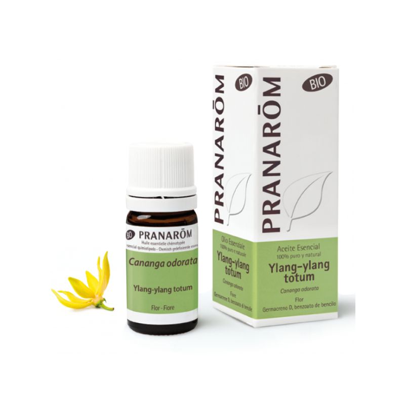 PRANAROM AE YLANG YLANG TOTUM 5ML BIO, originario de Asia, este árbol tropical de hojas brillantes y resistentes puede llegar a medir 20 metros de altura en estado salvaje. Sus flores amarillas en la madurez producen un extraordinario aceite esencial.