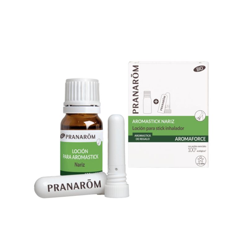 PRANAROM AROMAFORCE AROMASTICK NARIZ LOCIÓN BIO (10 ml) + STICK INHALADOR despeja la nariz y ayuda a respirar con más libertad. Su pequeño formato permite llevártelo a donde quieras.